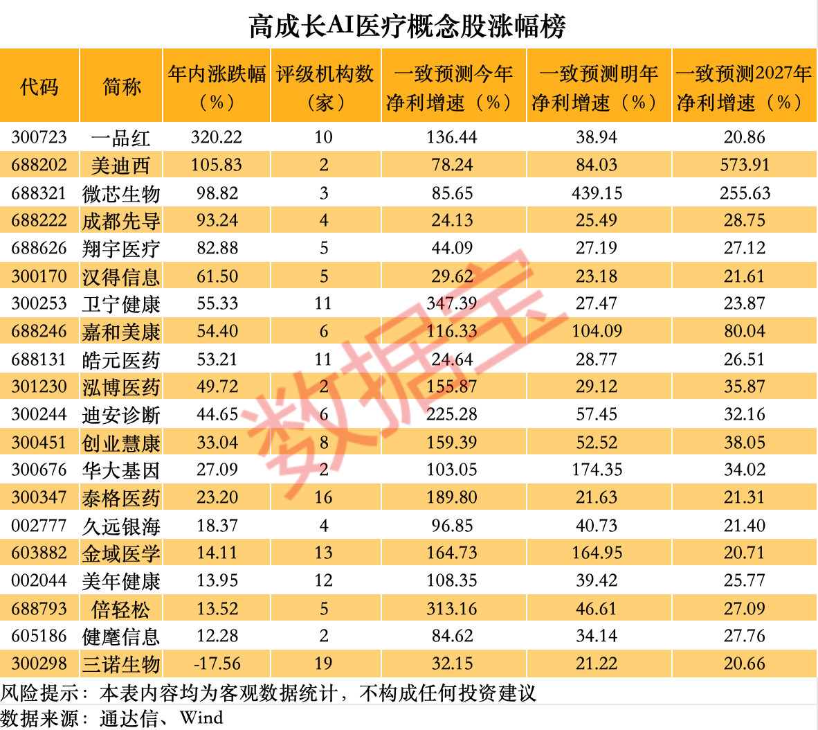 高成长AI医疗概念股涨幅榜出炉高成长AI医疗概念股涨幅榜出炉